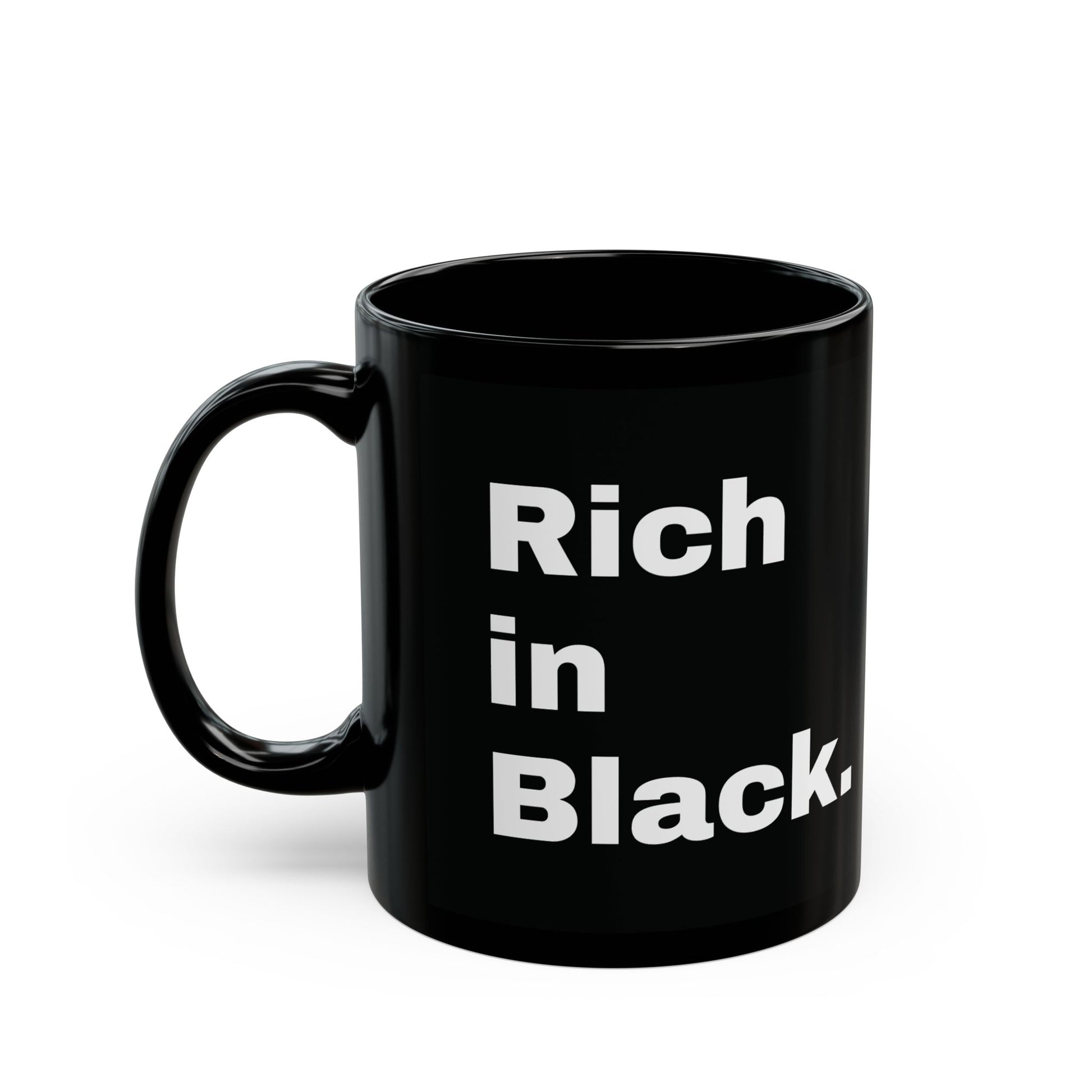 "Rich in Black." Mug